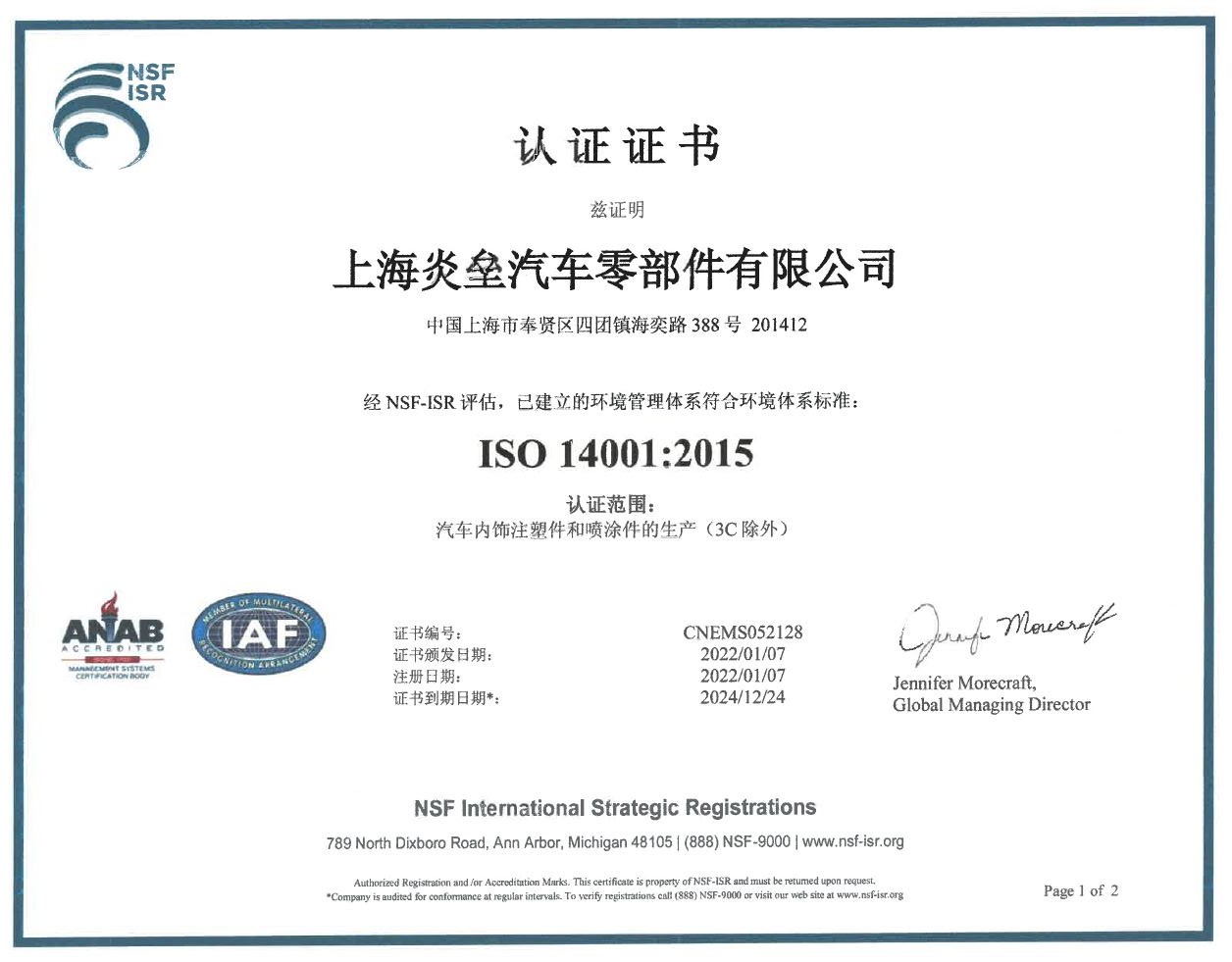 2019年5月份獲得了ITAF/TS 16949質量管理體系認證證書。